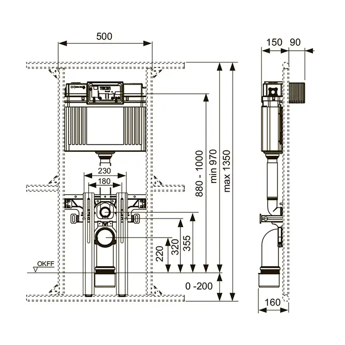 Tece Profil Инсталляция для унитаза со сливным бачком Octa II, 9 см, с комплектом крепления 9300500