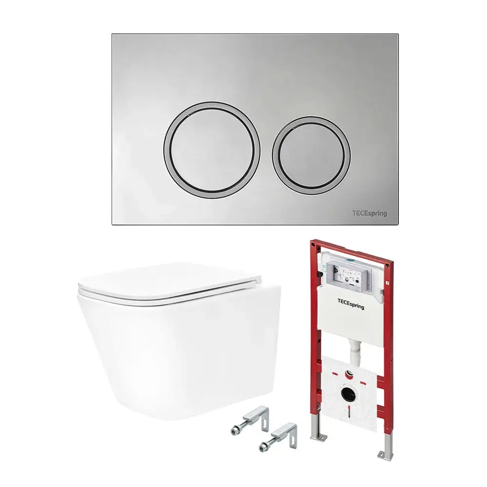 Tece Spring base Комплект: инсталляция, унитаз, кнопка круглая хром, крепления, цвет: белый глянцец K401101WCS