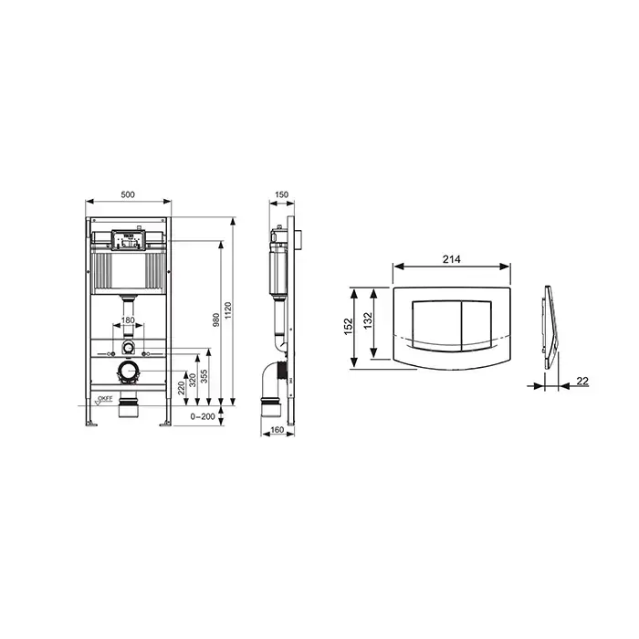 TECEprofil Модуль для писсуара с клапаном U 2, монтажная высота 1120 мм