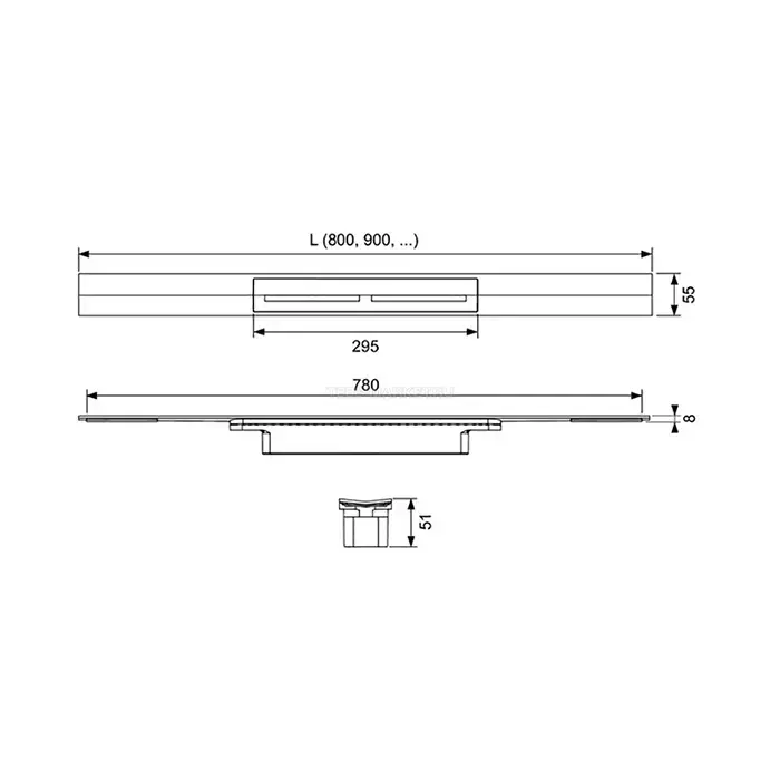 TECE Комплект дренажного канала 800/55 мм. цвет: нержавеющая сталь