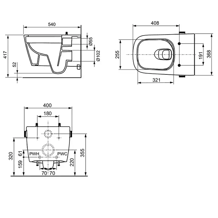 TECEneo Унитаз-биде подвесной 540х368х365, безободковый, смыв Tornado, с крепежом и комплектом подкл., цвет белый