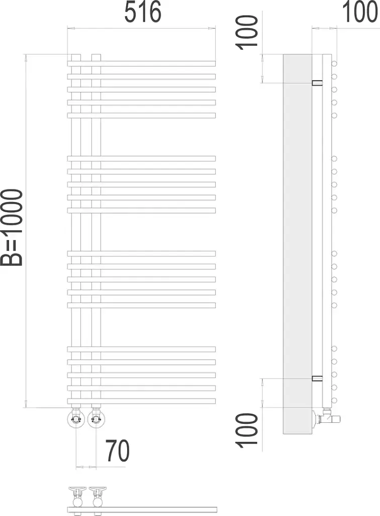 Terminus Астра Полотенцесушитель водяной для гвс 51,6x140h, цвет без покрытия 4670078530516