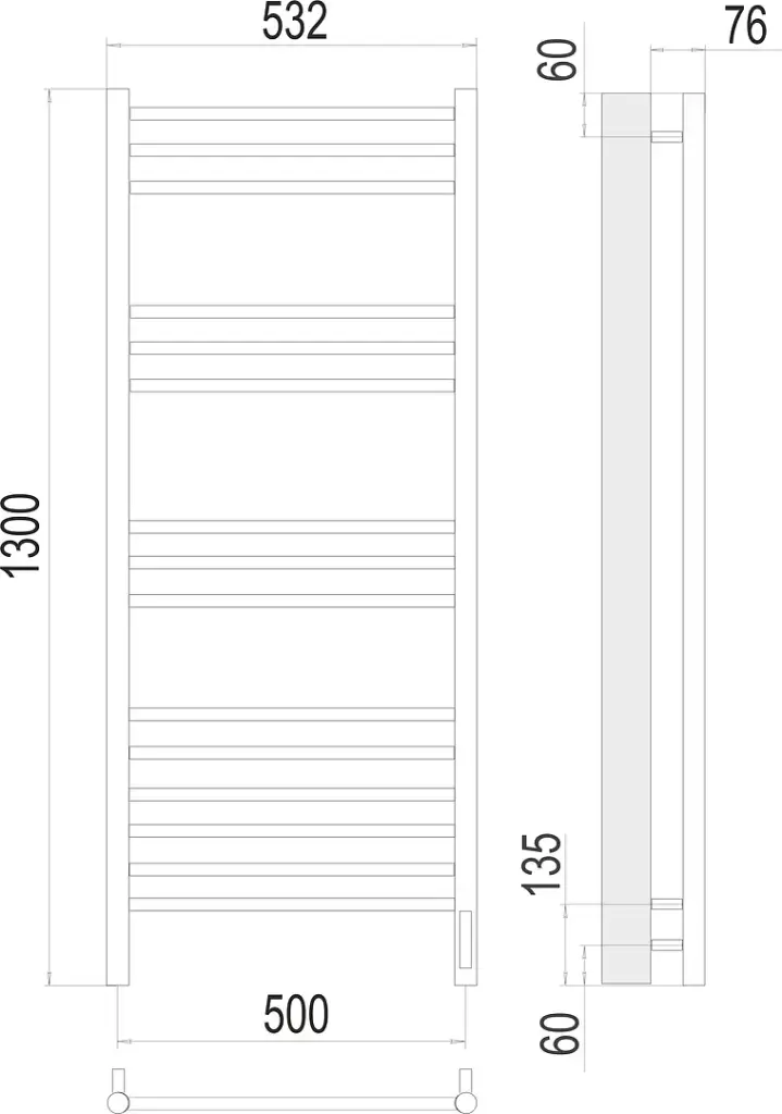 Terminus Аврора Полотенцесушитель электрический 53,2x130h, цвет без покрытия 4670078527233