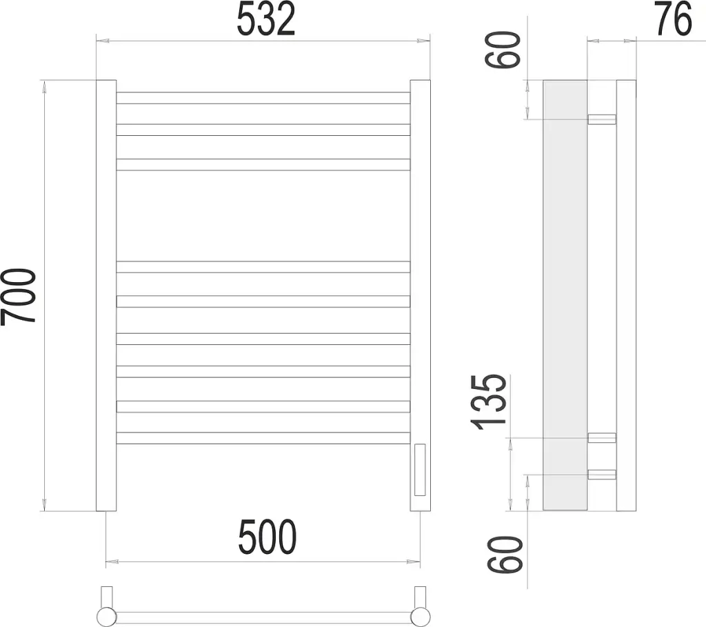 Terminus Аврора Полотенцесушитель электрический 53,2x70h, цвет: хром 4670078527240