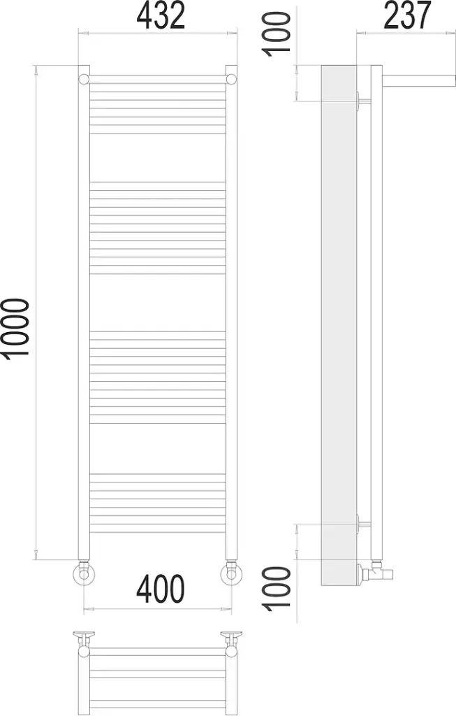 Terminus Аврора с/п Полотенцесушитель водяной для гвс 43,2x100h, цвет без покрытия 4670078529435