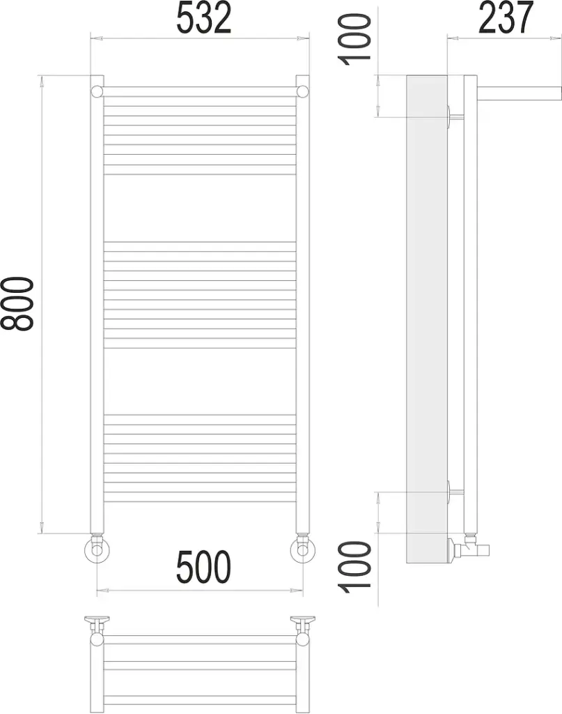 Terminus Аврора с/п Полотенцесушитель водяной для гвс 53,2x100h, цвет без покрытия 4670078529442