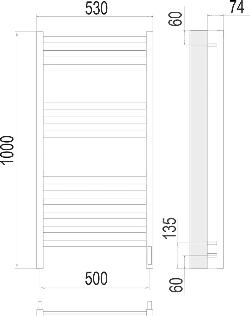 Terminus Енисей Полотенцесушитель электрический 53x100h, цвет без покрытия 4670078526250
