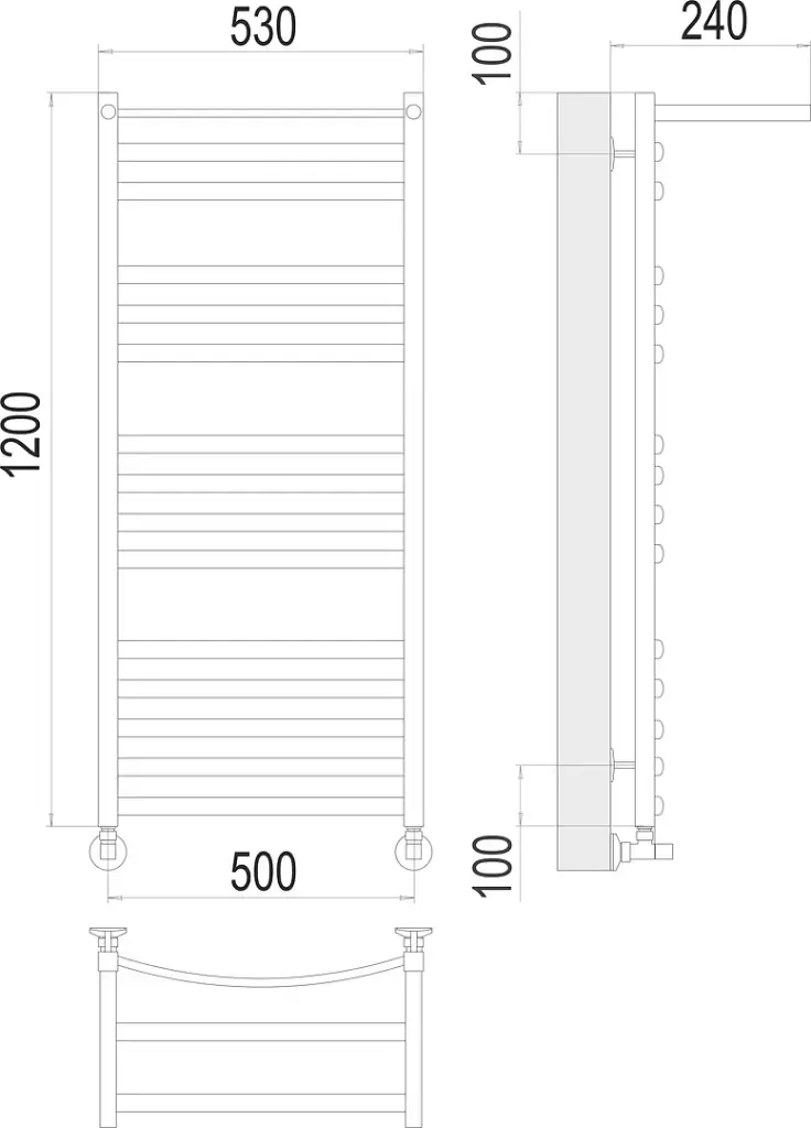 Terminus Енисей с/п Полотенцесушитель водяной для гвс 53x120h, цвет без покрытия 4670078529589