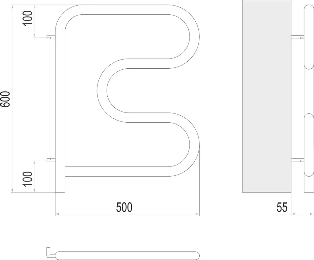 Terminus F-образный Полотенцесушитель электрический 50x60h, цвет без покрытия 4620768883880