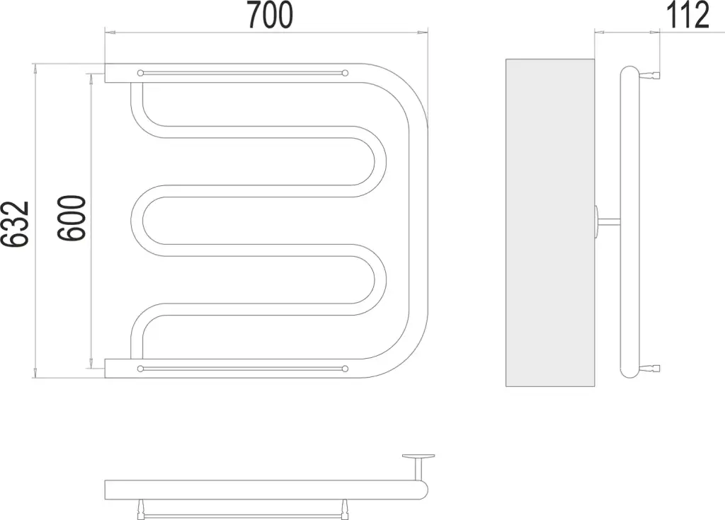 Terminus Фокстрот 1" БШ Полотенцесушитель водяной для гвс 60x53,2h, цвет без покрытия 4620768881046