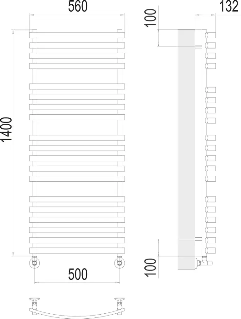 Terminus Капри Полотенцесушитель водяной для гвс 56x140h, цвет без покрытия 4670078530660