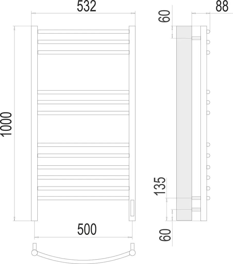 Terminus Классик Полотенцесушитель электрический 53,2x100h, цвет без покрытия 4670078527325