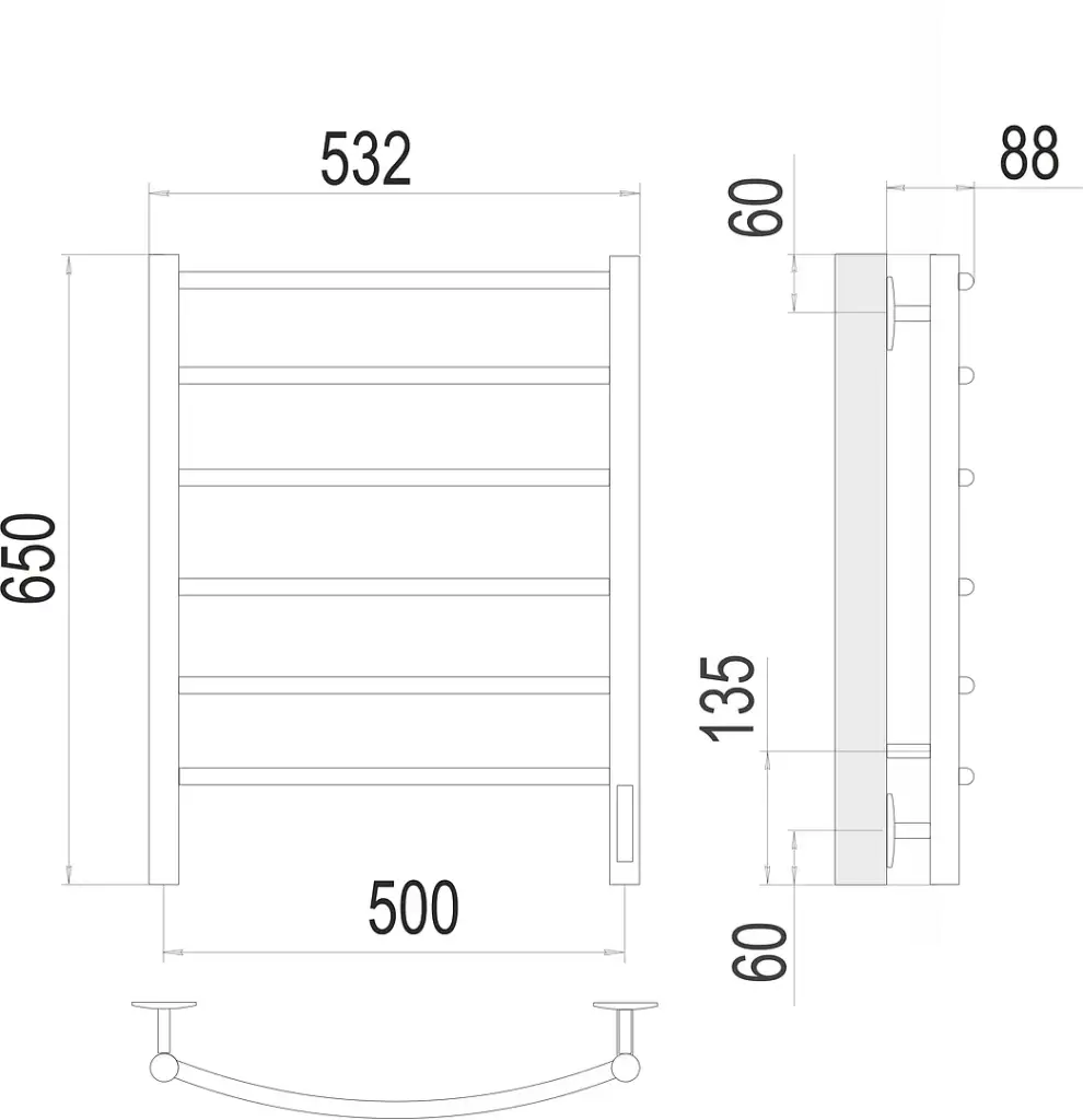 Terminus Классик Полотенцесушитель электрический 53,2x65h, цвет без покрытия 4670078531322