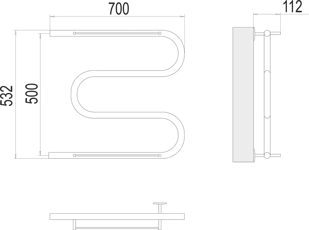 Terminus М-образный с/п (1") Полотенцесушитель водяной для гвс 70x53,2h, без покрытия 4620768880353