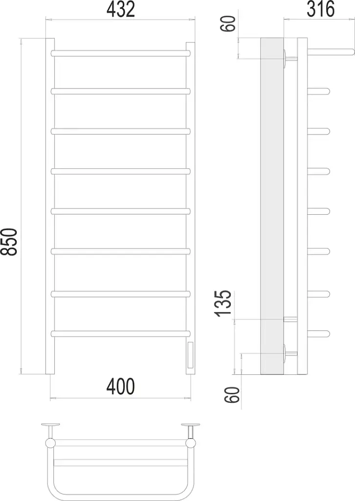 Terminus Полка Полотенцесушитель электрический 43,2x85h, цвет без покрытия 4670078531445
