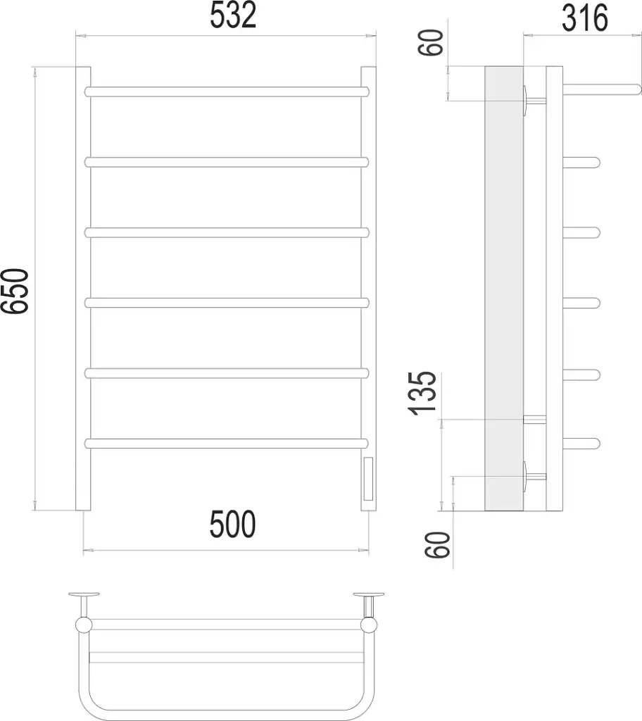 Terminus Полка Полотенцесушитель электрический 53,2x65h, цвет без покрытия 4670078531438