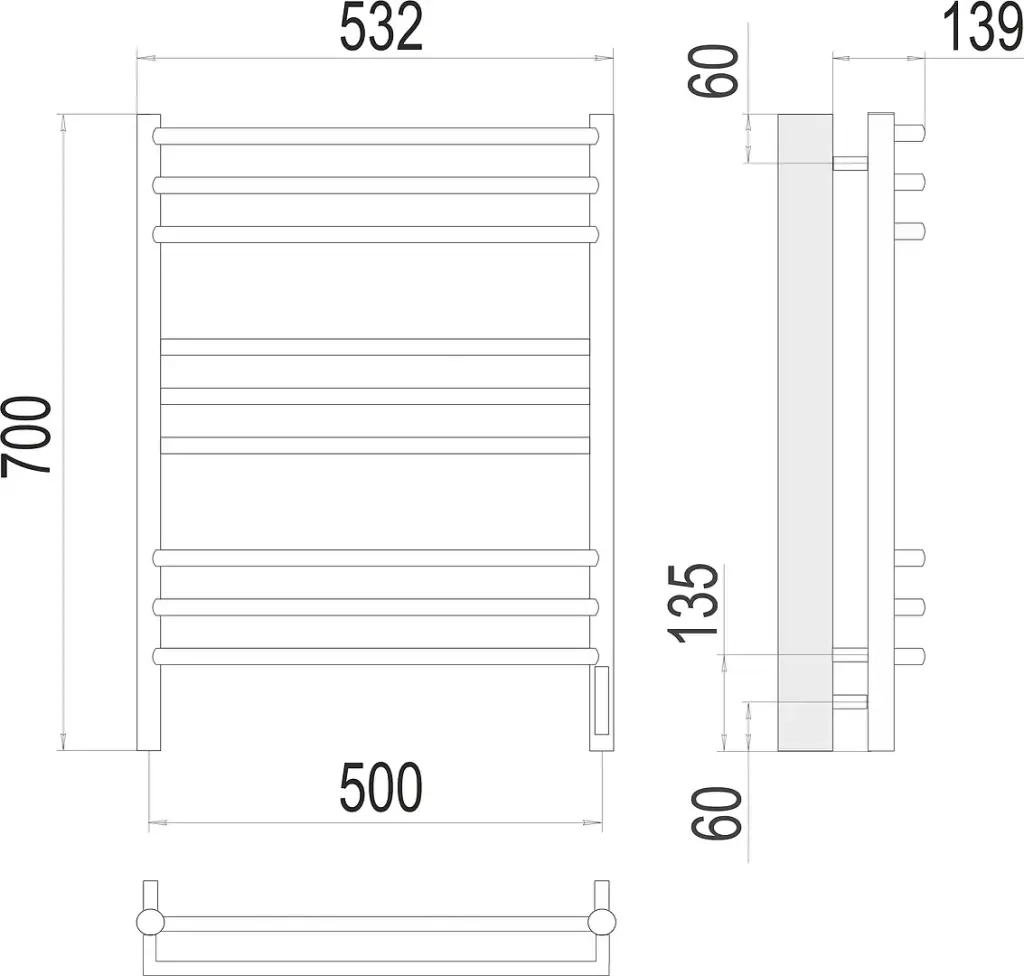 Terminus Прато Полотенцесушитель электрический 53,2x100hх13,9, цвет без покрытия 4670078527134