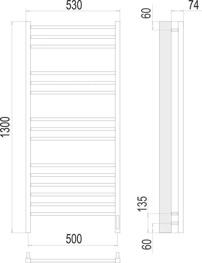 Terminus Сицилия Полотенцесушитель электрический 53x130h, цвет без покрытия 4670078526304