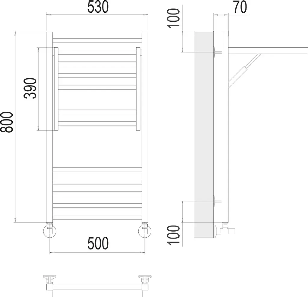 Terminus Валенсия Полотенцесушитель водяной для гвс 53x100h, цвет без покрытия 4670078529480