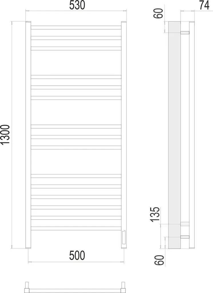 Terminus Ватикан Полотенцесушитель электрический 53x130h, цвет без покрытия 4670078526212