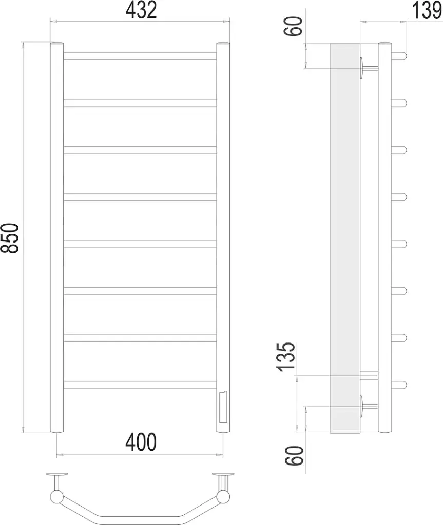 Terminus Виктория Полотенцесушитель электрический 43,2x85h, цвет без покрытия 4670078531209