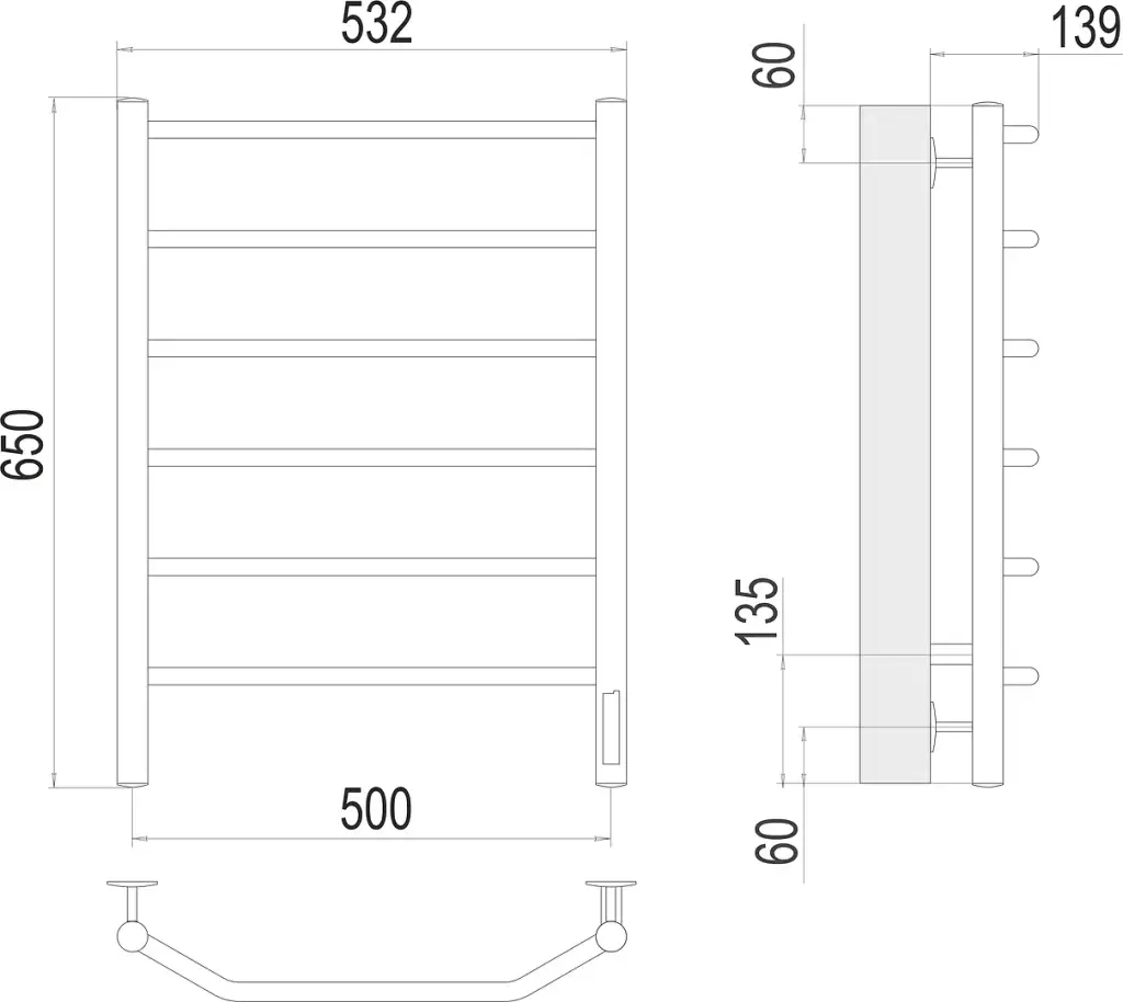 Terminus Виктория Полотенцесушитель электрический 53,2x65h, цвет без покрытия 4670078531193