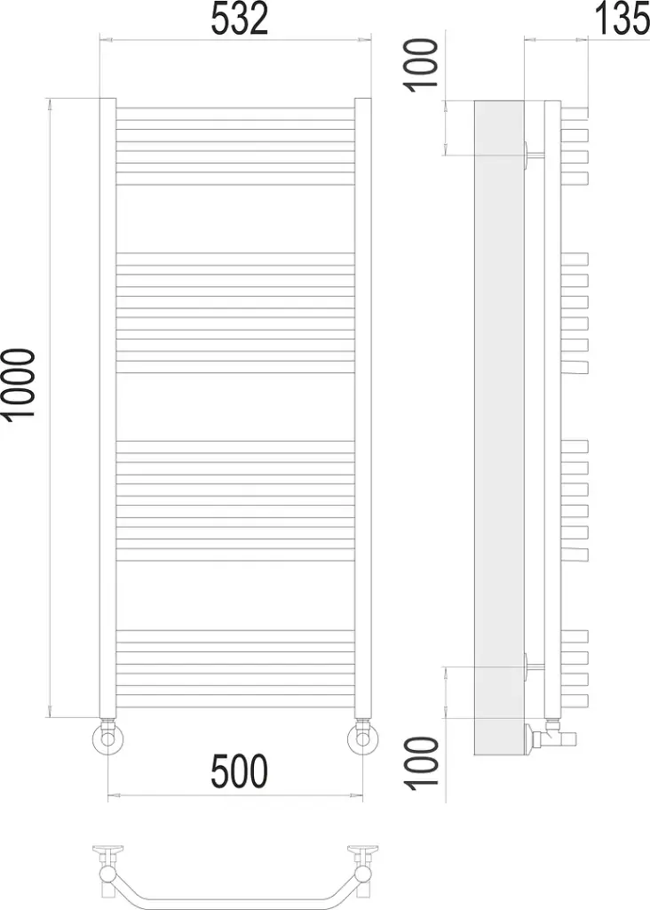 Terminus Виктория Полотенцесушитель водяной для гвс 53,2x100h, цвет без покрытия 4670078529541