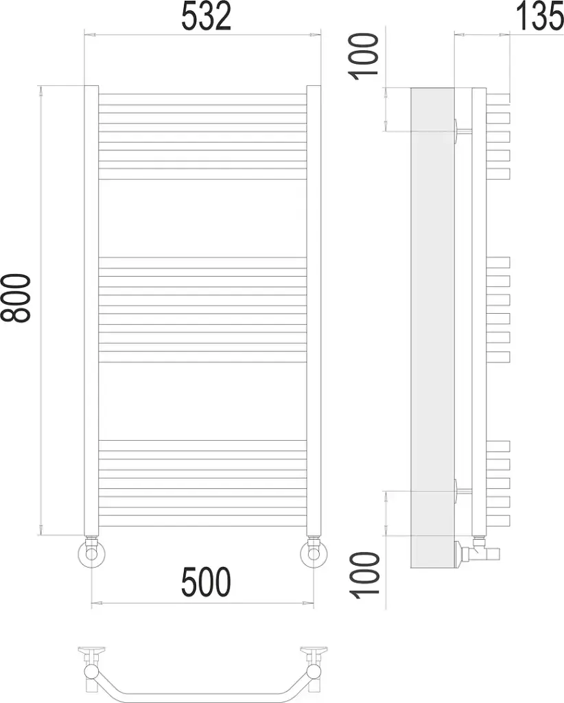 Terminus Виктория Полотенцесушитель водяной для гвс 53,2x80h, цвет без покрытия 4670078530134