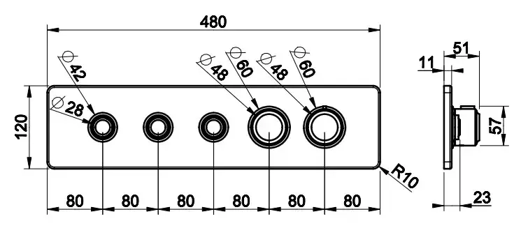 Gessi Hi-Fi Термостат для душа, с вкл. до 5 источников одновременно, с полкой из черного мат. стекла, внешняя часть, цвет: Black Metal PVD