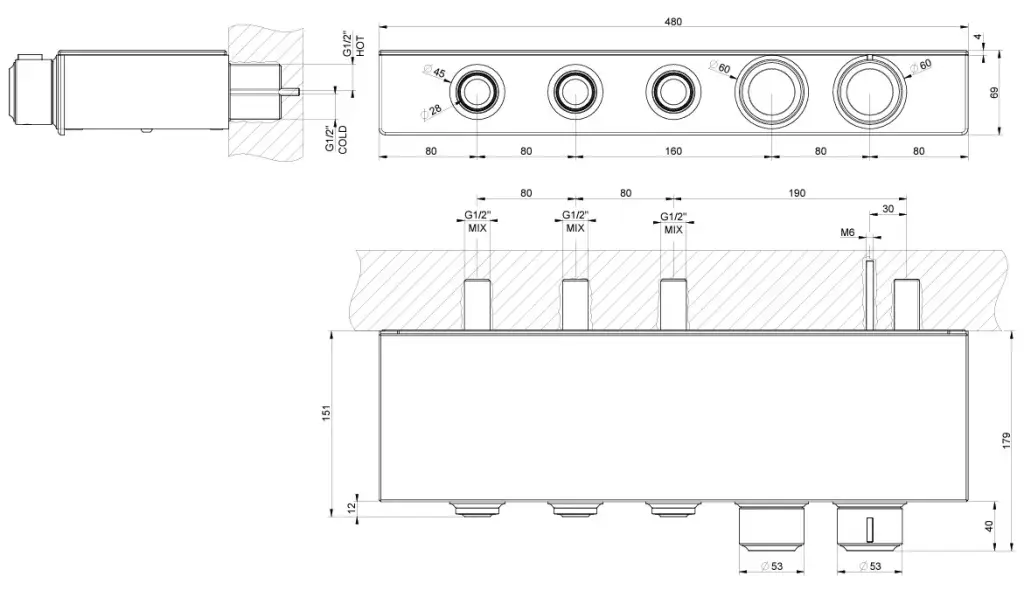 Gessi Hi-Fi Eclectic Смеситель для душа настенный встраиваемый, термостатический, с 2 запорными кнопками, цвет: черный матовый