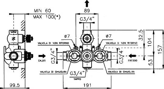Nicolazzi Termostatico Смеситель термостатический для душевой стойки, цвет: хром