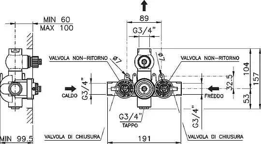 Nicolazzi Termostatico Смеситель термостатический для душевой стойки, цвет: хром