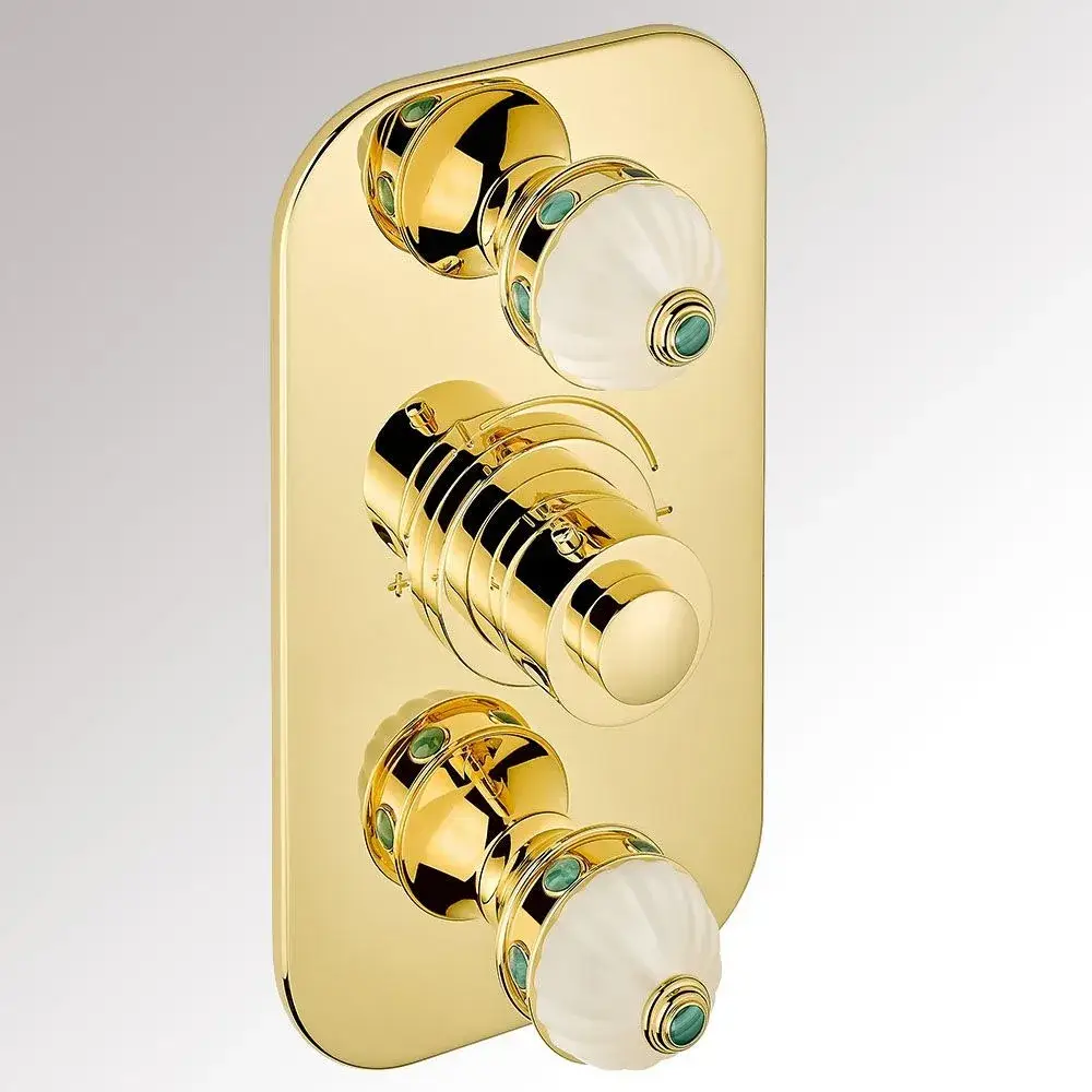 Термостат внутристенный с 2 запорными вентилями, внешняя часть, 15*8.4*h27, золото PVD 15*8.4*h27 золото PVD