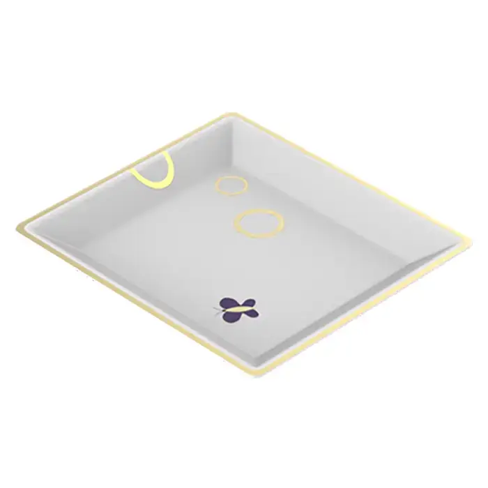 THG CAPUCINE MAUVE DECOR OR Поднос керамический 171х154 мм., настольный, middle size, декор золото/лиловый, цвет: белый