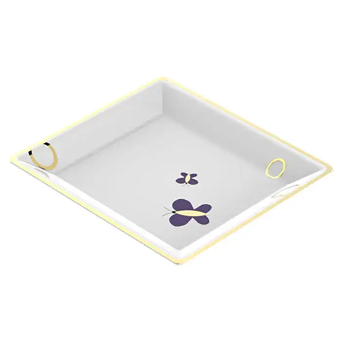 THG CAPUCINE MAUVE DECOR OR Поднос керамический 220х198 мм., настольный, large size, декор золото/лиловый, цвет белый