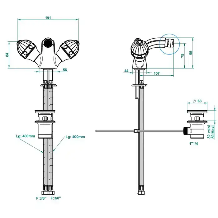 THG CHEVERNY MALACHITE Смеситель для биде на 1 отверстие, с донным клапаном, вставки малахит, цвет полированное золото
