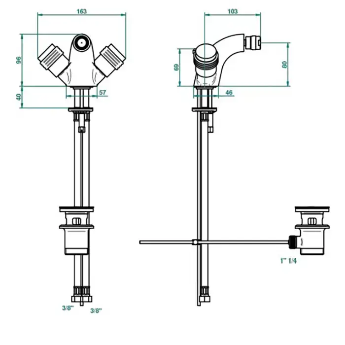THG DIPLOMATE GROOVED RINGS Смеситель для биде на 1 отверстие, с донным клапаном, цвет хром/золото