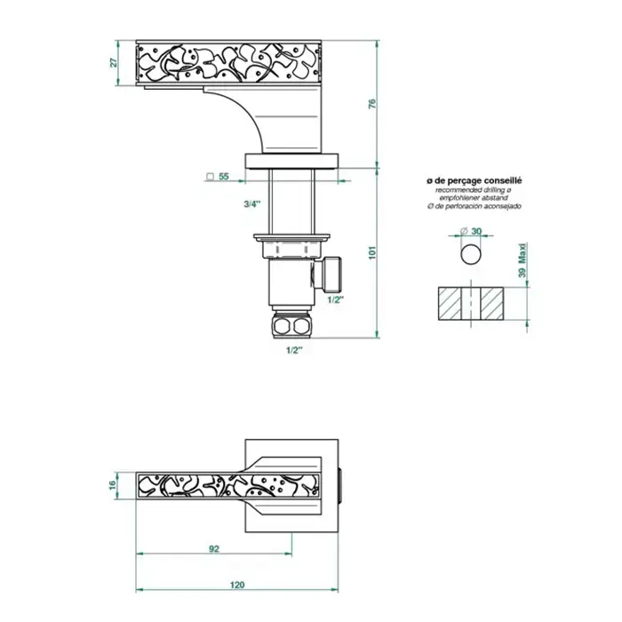 THG Ginkgo Смеситель для раковины, 3 отв., цвет: золото/хрусталь