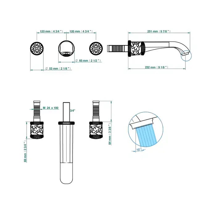 THG HIRONDELLES Смеситель для ванны встраиваемый, двухвентильный, без ручного душа, внешняя часть, цвет Umber color PVD