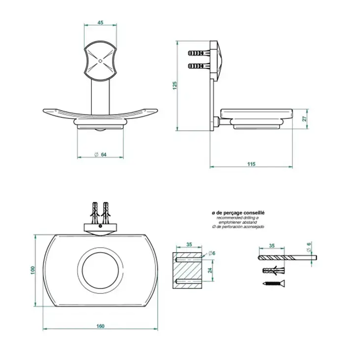 THG INFINI PORCELAINE BLANCHE Мыльница стеклянная, подвесная, цвет хром
