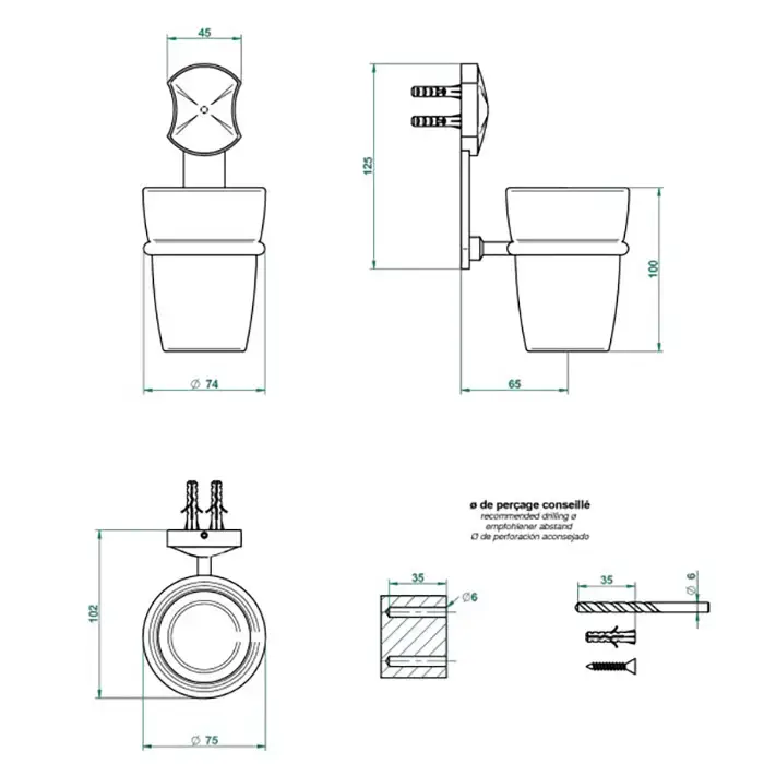 THG INFINI PORCELAINE BLANCHE Стакан стеклянный, подвесной, цвет хром