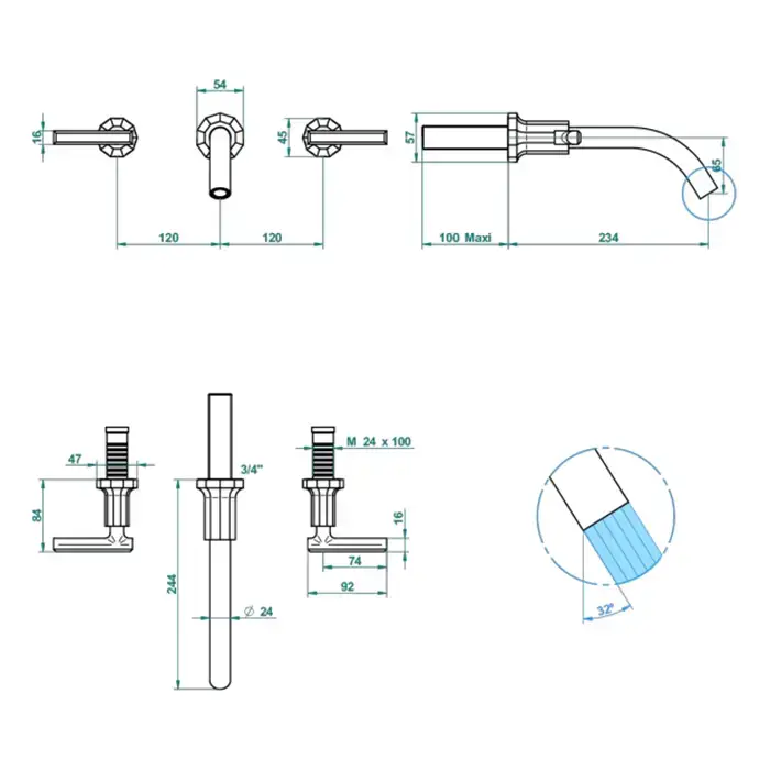 THG Les Ondes à manettes Смеситель для раковины настенный встраиваемый, двухвентильный, цвет Matt nickel