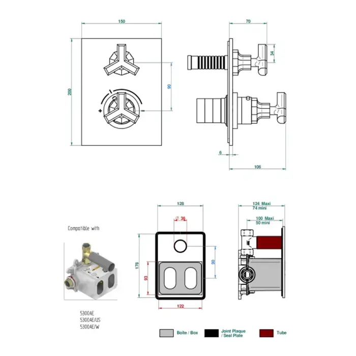 THG Les Ondes Смеситель для душа, термостатический, с переключателем потока, цвет Soft matt gold