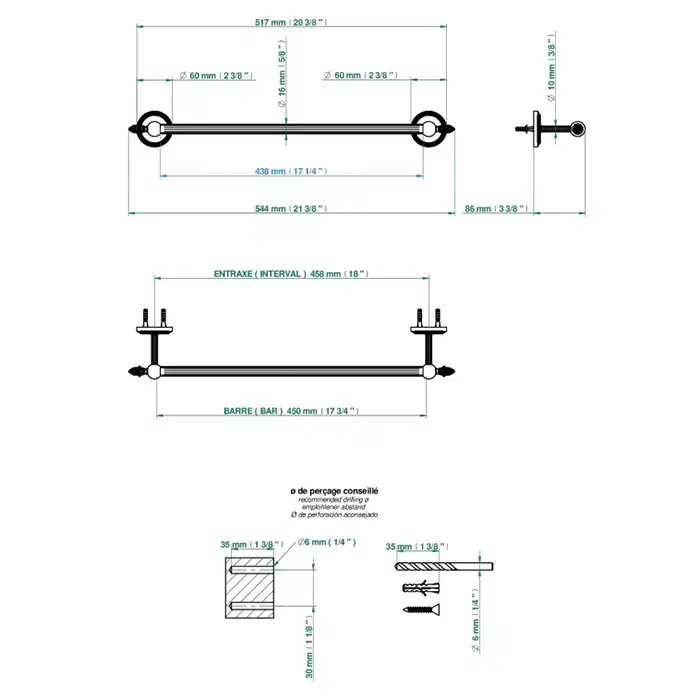 THG Malmaison metal Полотенцедержатель 45см., подвесной, цвет: Soft matt gold