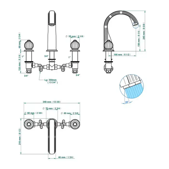 THG MANDARINE CRISTAL CLEAR Смеситель для установки на борт ванны на 3 отверстия, без ручного душа, цвет полированное золото