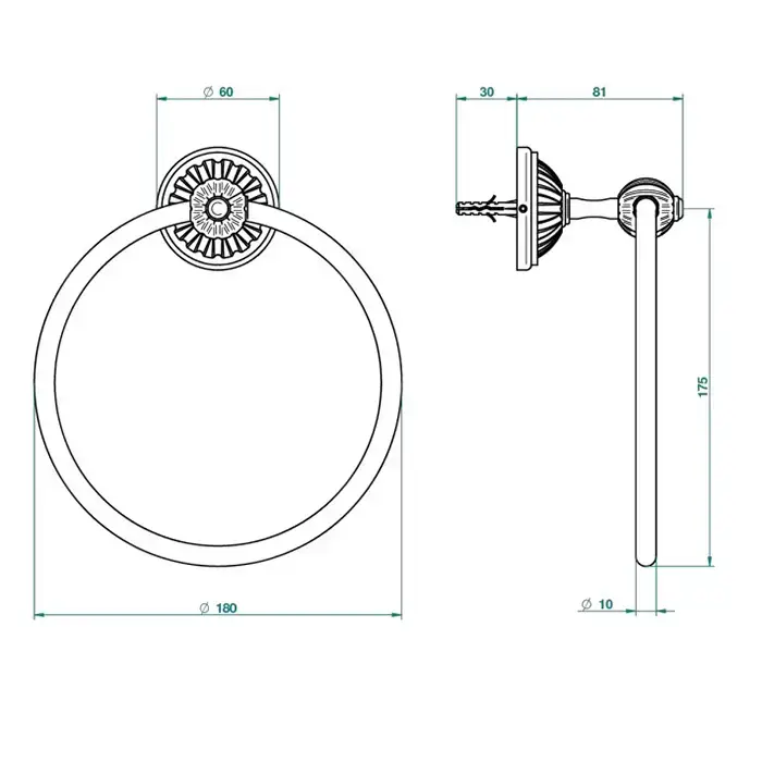 THG Mandarine metal Полотенцедержатель-кольцо 18см., подвесной, цвет: хром/золото