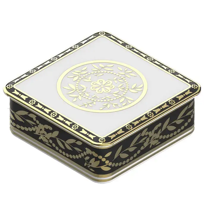 THG MARQUISE NOIR DECOR OR Коробка для таблеток керамическая, квадратная 55х55 мм., настольная, декор черный/золото, цвет: белый