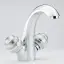 THG MARQUISE BLANC DECOR PLATINE Смеситель для раковины на 1 отверстие, с донным клапаном, ручки белые, декор платина, цвет хром