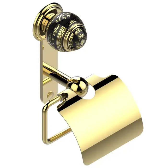 THG MARQUISE NOIR DECOR OR Держатель туалетной бумаги с крышкой, декор черный/золото, цвет полированное золото