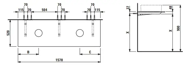 Топ под 2 раковины 158*52*1.3h светлый орех-101